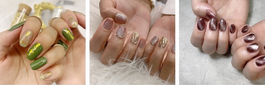 Tehnicienii de unghii decoreaza mainile femeilor cu foita de aur, atat ca decor suplimentar, cat si ca principal, asezand bucati stralucitoare de foita de aur complet pe placa de unghii. Cu ajutorul acestei folii, chiar și o manichiură minimalistă nud poate fi transformată în ceva fascinant și spectaculos.