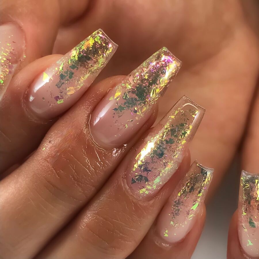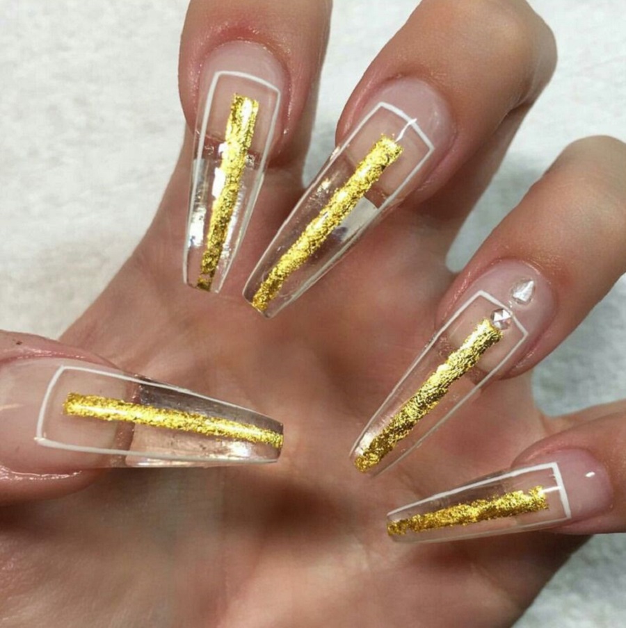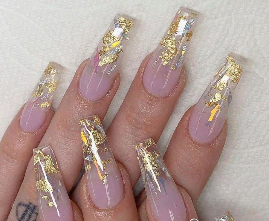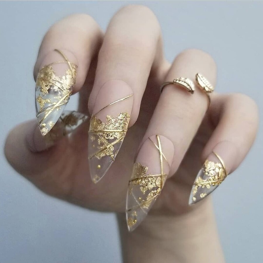 Unghii transparente cu folie de aur