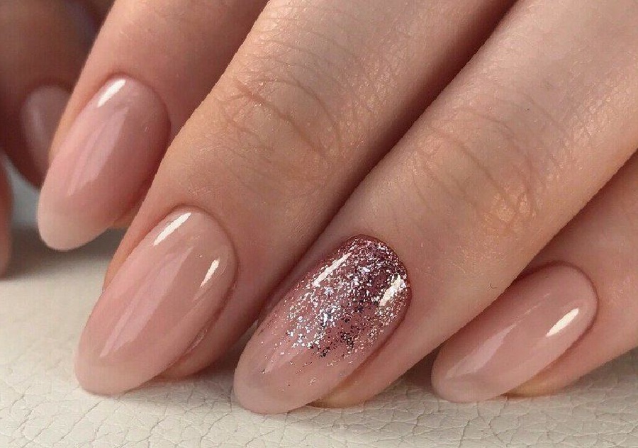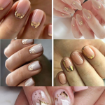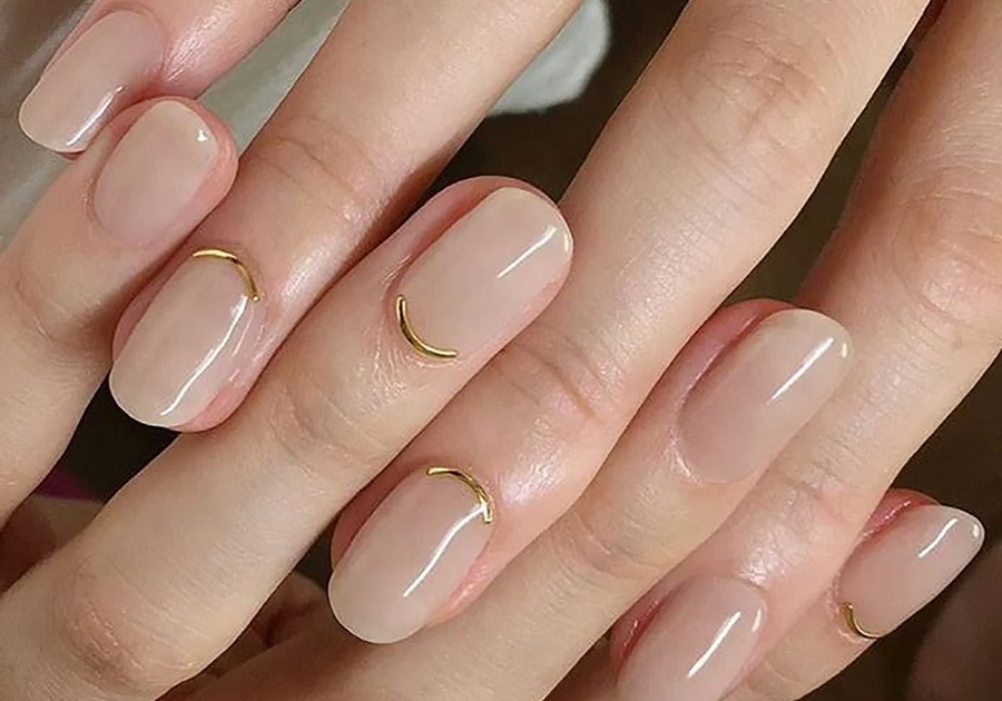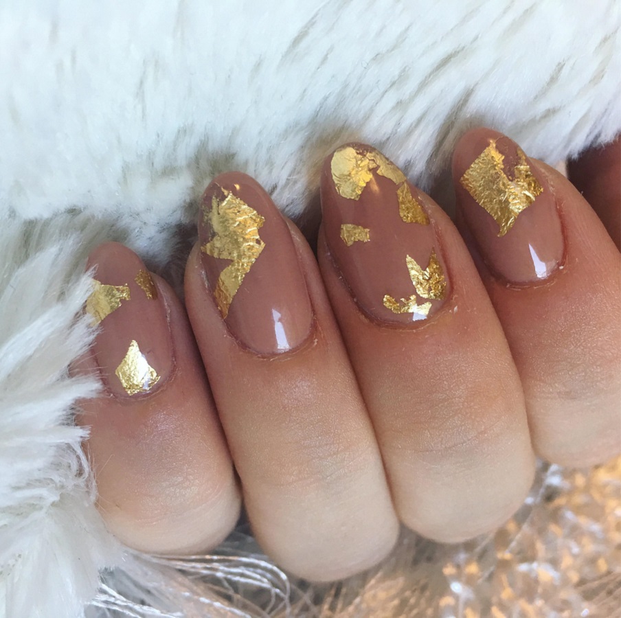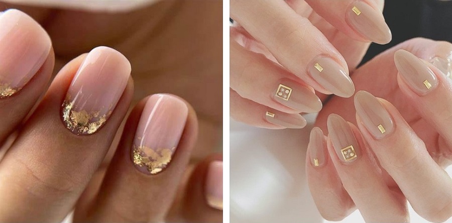 Manichiura nud cu decor de foita de aur