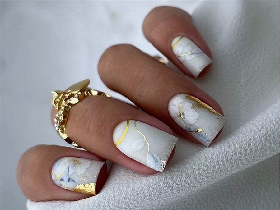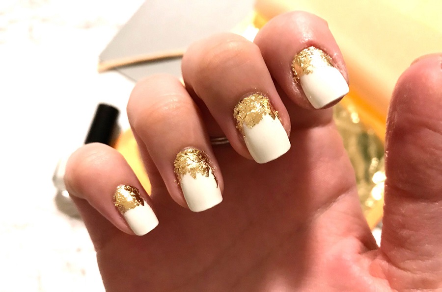 Manichiură lăptoasă sau albă cu folie aurie