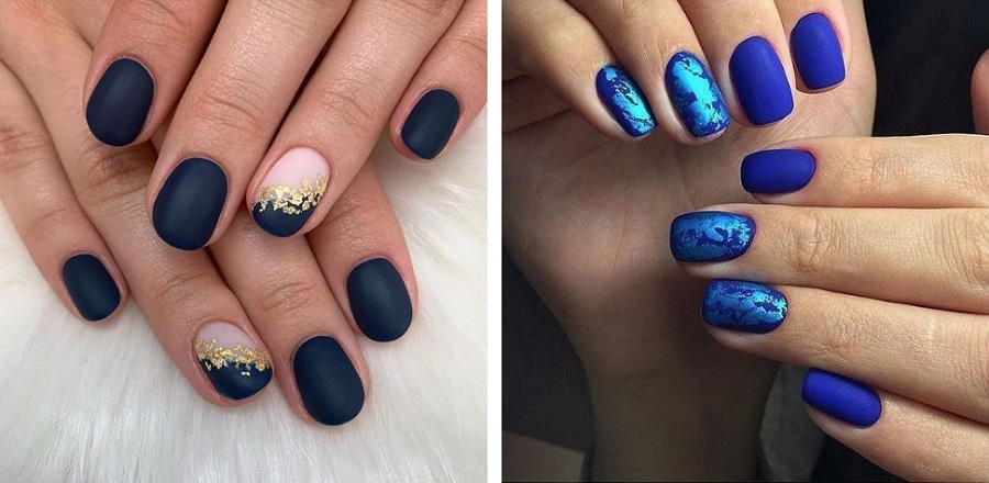 Manichiura albastra mata cu folie