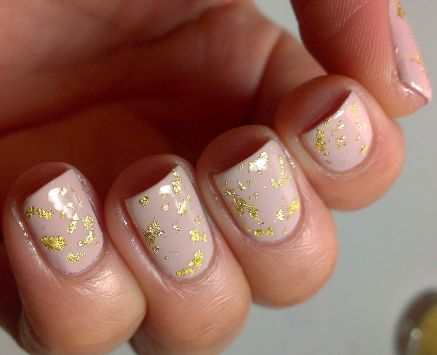 Manichiura cu foita de aur: caracteristici pentru unghiile scurte si lungi