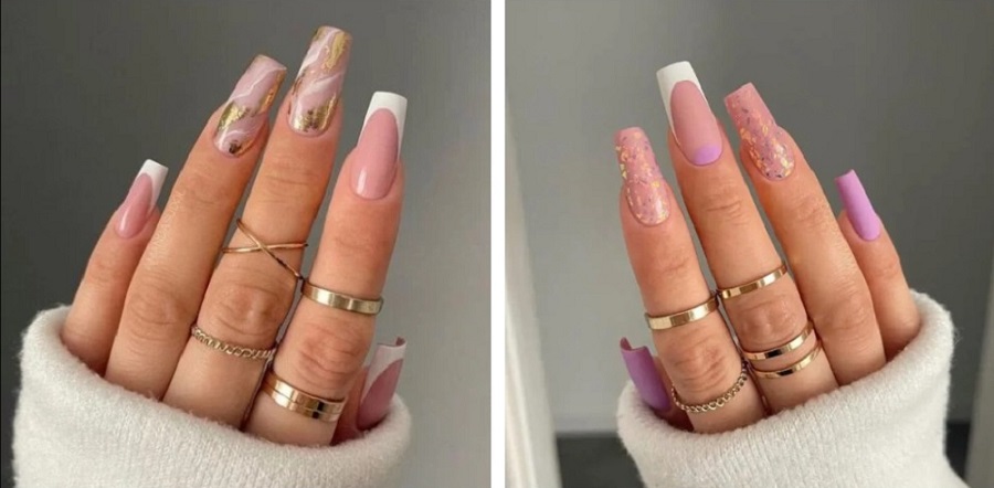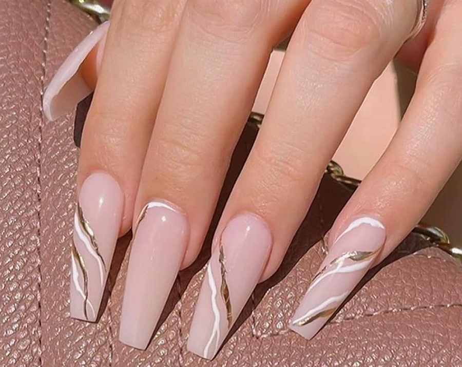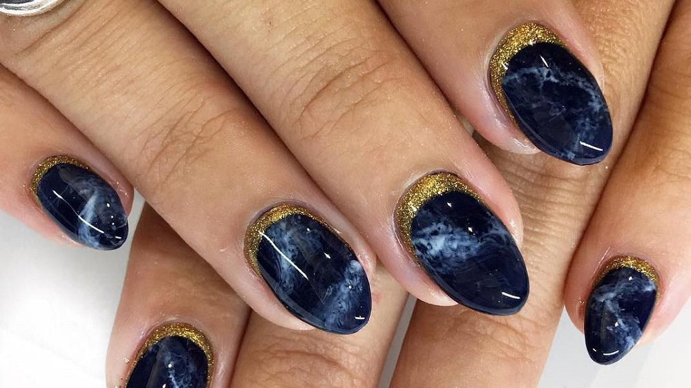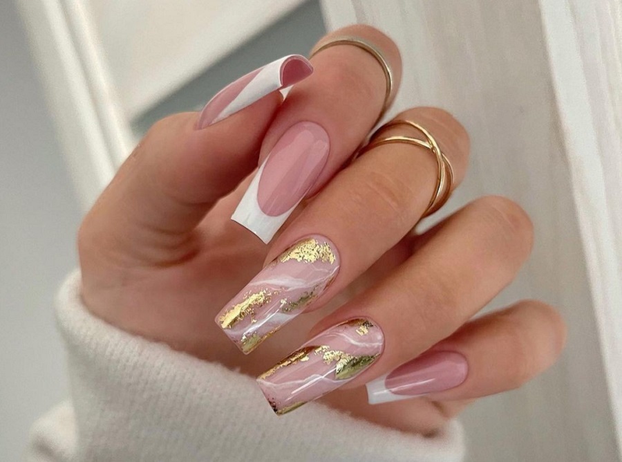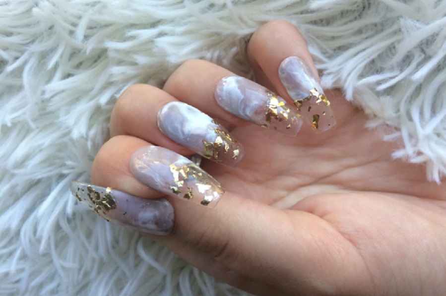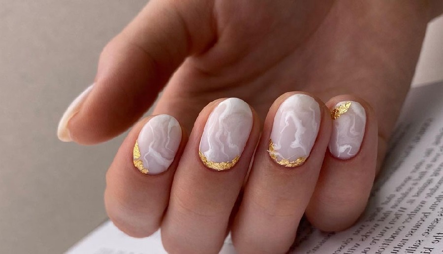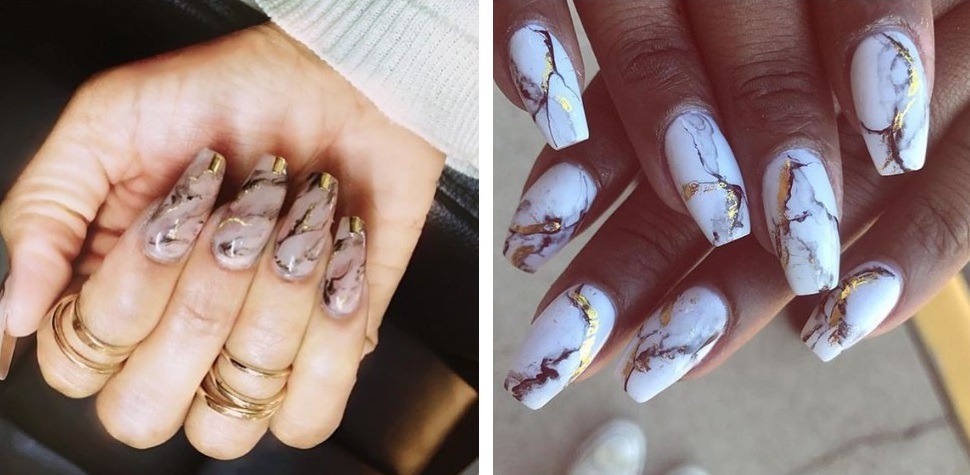 Manichiura din marmura cu foita de aur