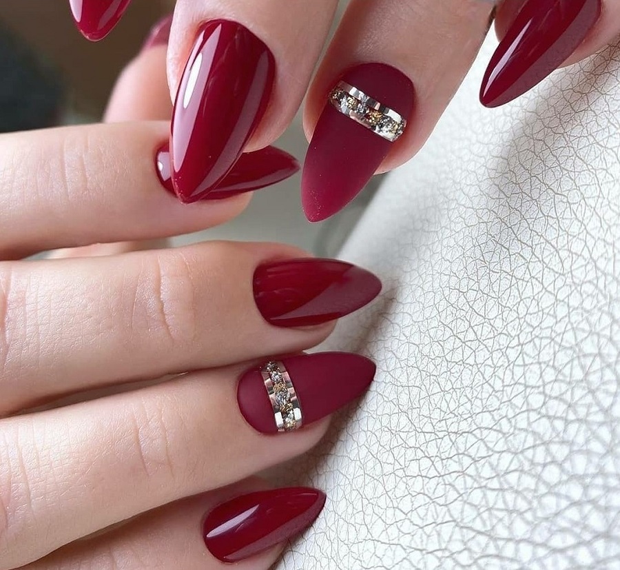 Pentru a face jacheta cu folie să arate cât mai contrastant, puteți folosi un finisaj mat pe placa de unghii și acoperiți vârful unghiei cu luciu cu luciu.
