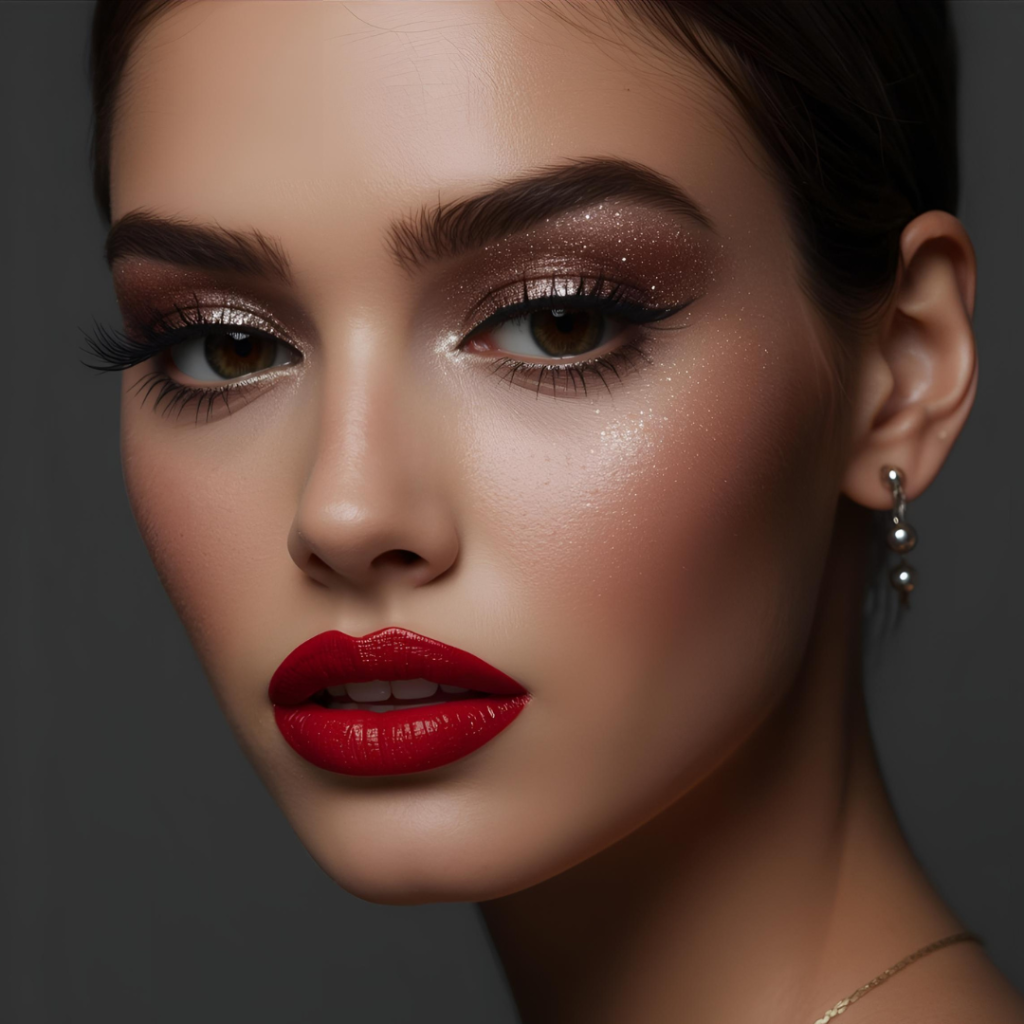 Aplicarea acestor tendințe nu se limitează la paleta clasică de roșu și auriu. Specialiștii recomandă integrarea texturilor mate cu accente de gloss sau glitter, pentru un efect sofisticat. Spre exemplu, un fard mat în nuanță de vin poate fi completat cu un accent glitter în colțul intern al ochiului, pentru un look modern și ușor de purtat la orice petrecere.